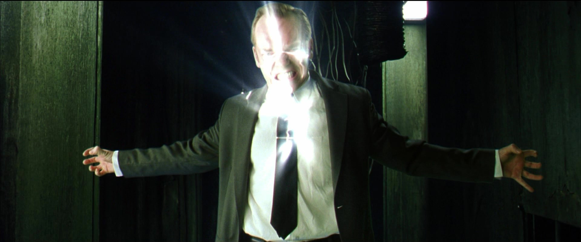 Smith tries to force Morpheus to divulge Zion's mainframe codes