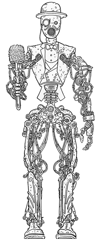 This robot was first mentioned and introduced into the fictional universe of The Matrix in the comic strip Bits and Pieces of Information. It was originally a webcomic and part of The Matrix Comics Series 1 before getting published in The Matrix Comics Volume 1 and, later, in The Matrix Comics: 20th Anniversary Edition. The story was partially retold in Part 1 of The Animatrix episode The Second Renaissance.