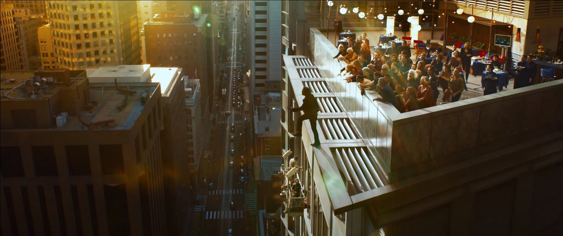 In a shot from the trailer, Bugs is the window-cleaner on the right who happens to be looking up at the split-second Neo was hovering in mid-air (click to zoom)