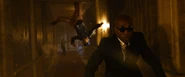All of the party-guests' memories were then altered to believe that he'd been rescued at the last second - but the Machines neglected to wipe the memory of the window-washer who happened to see the event from several floors below. Bugs saw Neo hovering in mid-air, and even saw his RSI slip back into its original form for a brief moment, and this led her to question the nature of her reality, ultimately setting her on a path to encounter members of the human resistance who eventually freed her from the Matrix, particularly Niobe. Even though most people in the real world thought Neo died years ago, Bugs' brief glimpse of Neo convinced her that the Machines were hiding him somewhere in the Matrix, driving her to assemble a like-minded crew determined to find him.[3]