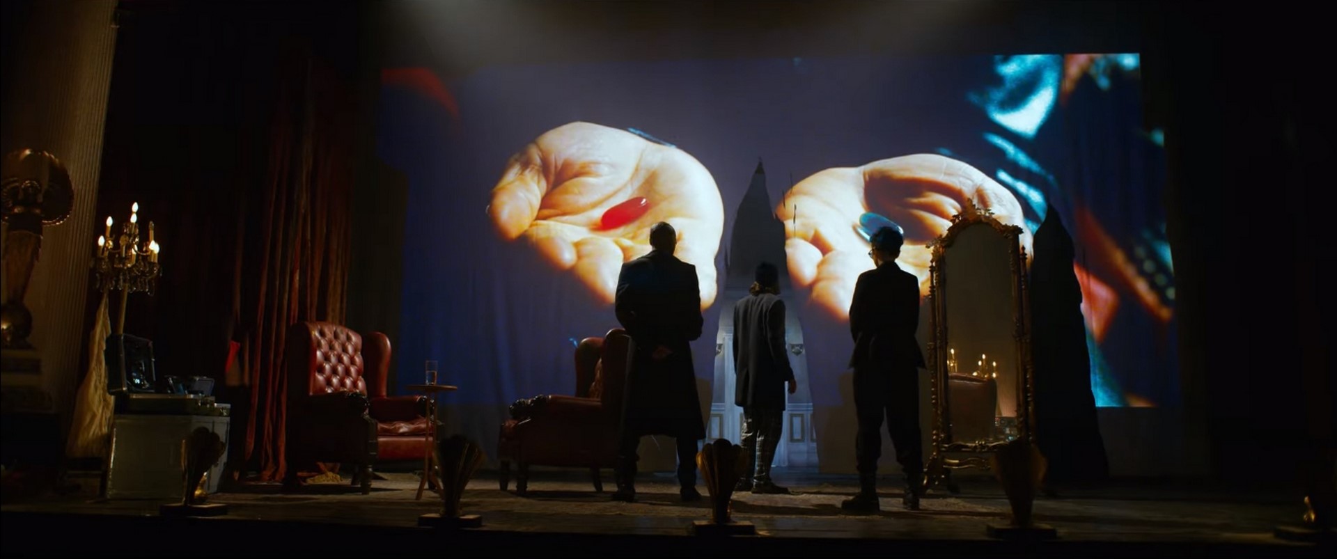While she was hiding, Morpheus grabbed Bugs and rescued her, pulling her into a hallway of doors and leading her into Neo's old apartment during his time as Thomas A. Anderson. After discussing Neo and their own realization of what the Matrix was, Bugs gave Morpheus the choice between a blue pill and a red pill. He took the red pill and the two then fled the other Agents and escaped, leaping from a building and into the Real World. From there, the two joined together with the crew of the Mnemosyne to find Neo.
